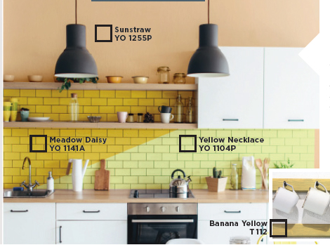 廚房可是房子的中心點,據說廚房粉刷上黃色有助於人體飲食消化的作用。黃色是一種能注入光亮及能量的顏色。黃色的空間將是每個人都喜歡待在那裡的空間。
