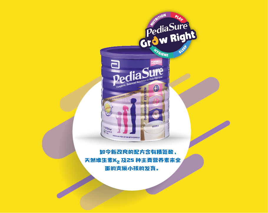 在孩子初发育成长的阶段,均衡的营养及饮食对孩子的发育是关键的因素。医学专家的研究报告已显示,小孩在首5岁前的身体发育,80%需要依靠他们所摄取的营养所致,而基因遗传只占了20%。5为了让初发育期的小孩获得足够营养所需,建议您给您的孩子一天喝2杯的Pediasure奶粉,在8周内您将可以明显的看到孩子的成长。 6,7