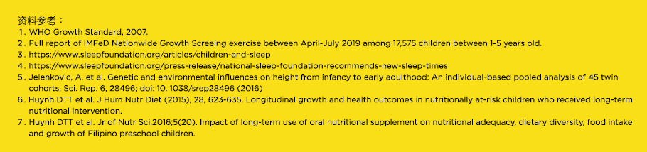 您知道吗?您孩子的个子高、矮,其实在小孩5岁的时候所发育的高度已达到60%。1由此可知,在孩子的黄金发育期,为他们提供均衡的营养及饮食生活是非常重要的,以确保孩子的发育获得最佳的发展。