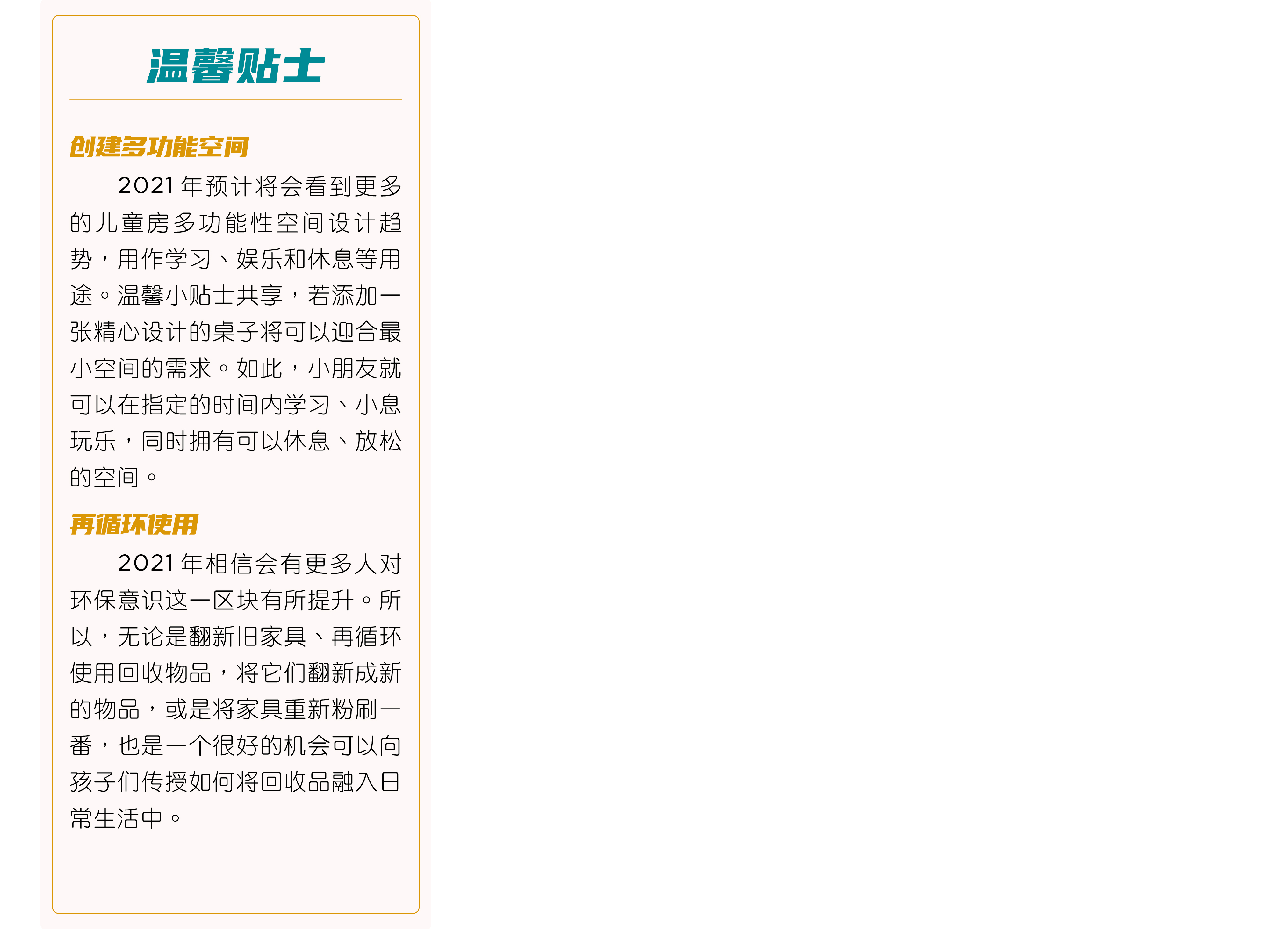 即使被困在家里,并不意味着生活会变得焦躁、沉闷,尤其是对家里的小朋友而言。2021 即将到来,不如把家里给重新粉刷一番,让室内的空间变得 更加生气勃勃来迎接 2021 的新开始,同时也让家居的实用性更高?