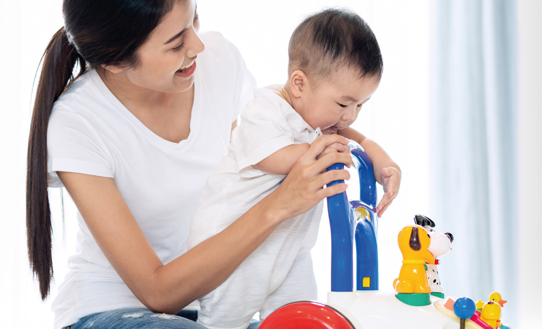 对于尚未发展出语言能力的小婴儿,陪玩的重点在于「笑容」及「引导」。与孩子互动时保持微笑,有助孩子未来建立良好的人际关係。引导孩子拿玩具做动作、模彷大人说话,则可以刺激孩子的动作及语言发展。