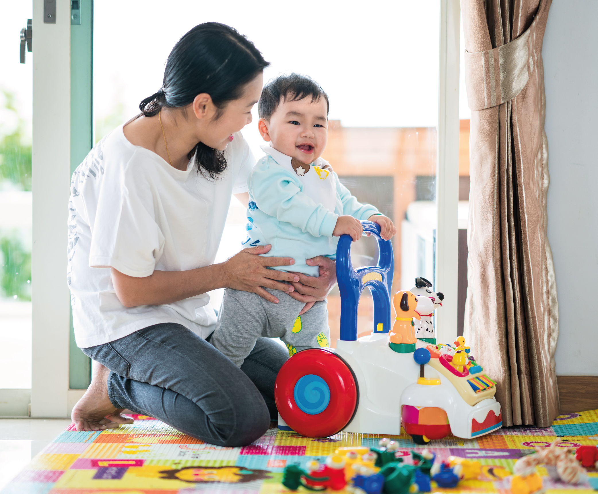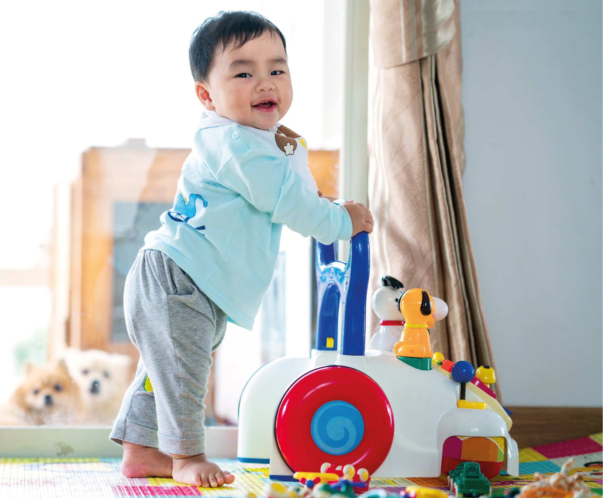 这个阶段的孩子开始会走、会跑,游戏环境的安全很重要。家裡最好设置防撞、防跌的机关,让孩子自由探索环境。